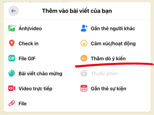 Nhấn vào ô soạn thảo bài viết mới >> nhấn vào biểu tượng “...” và chọn tính năng “Thăm dò ý kiến".