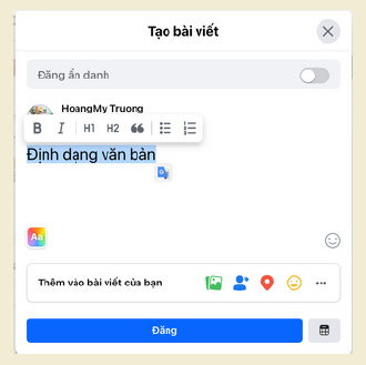 Lưu ý: chỉ có thể định dạng văn bản khi đăng bài trên máy tính/laptop