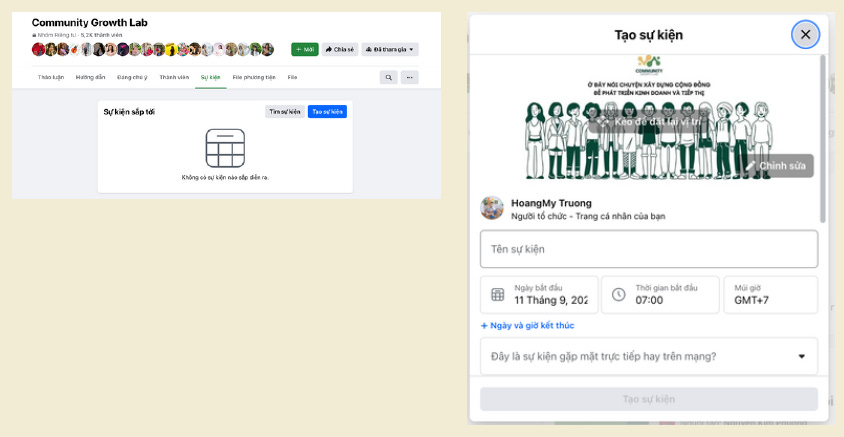 Điền các thông tin mô tả sự kiện (tên sự kiện, thời gian, quyền riêng tư của sự kiện, …)