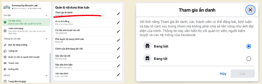 Nếu QTV chưa thấy chức năng Bài viết ẩn danh trong nhóm, bạn phải bật chế độ này.
