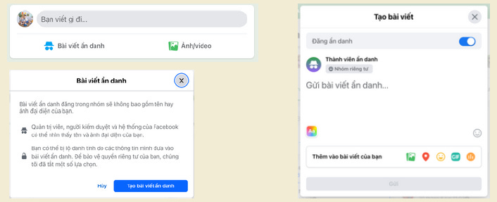 Khi chọn tính năng đăng ẩn danh, chỉ có QTV, kiểm duyệt viên mới biết được tên của thành viên đăng bài. Các thành viên còn lại sẽ không biết được. Đồng thời, những bình luận của thành viên thuộc bài viết đăng ẩn danh cũng sẽ đi theo nick “thành viên ẩn danh” thay vì hiện rõ nick của người đăng.