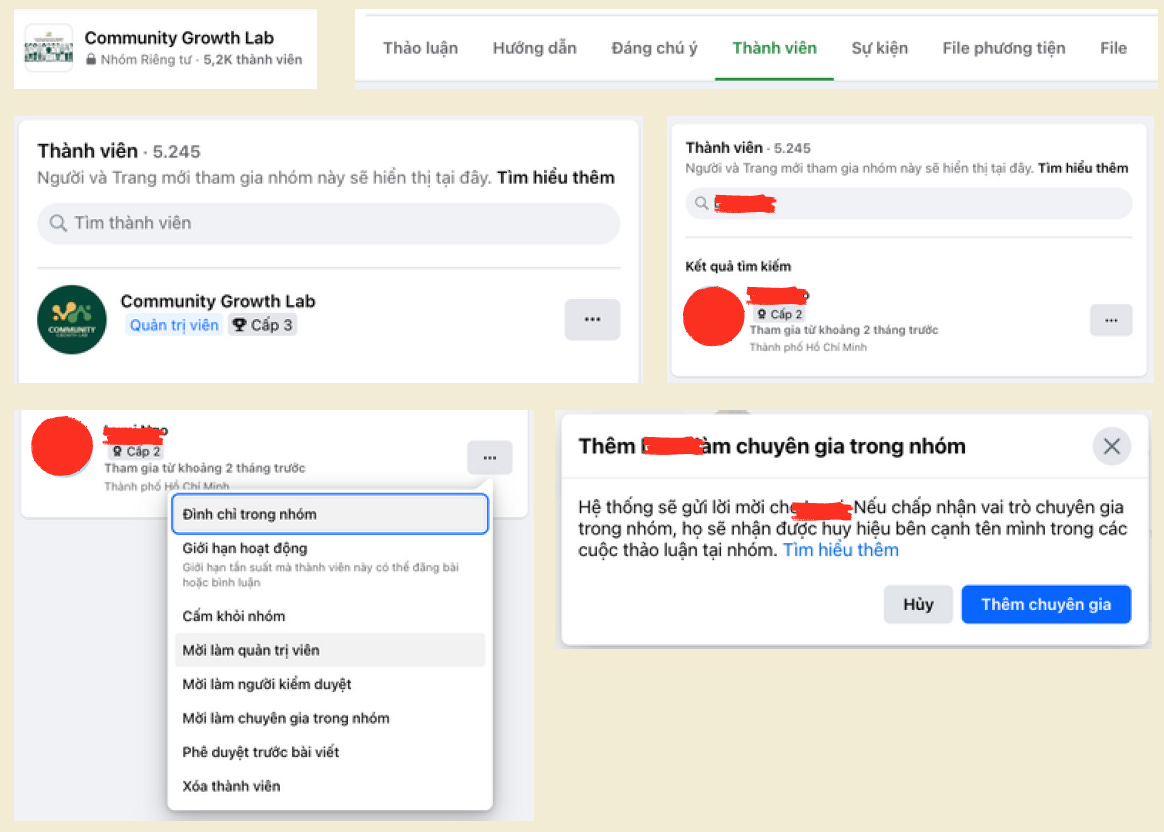 Chỉ QTV mới có thể chỉ định hoặc dừng chỉ định người khác làm chuyên gia trong nhóm