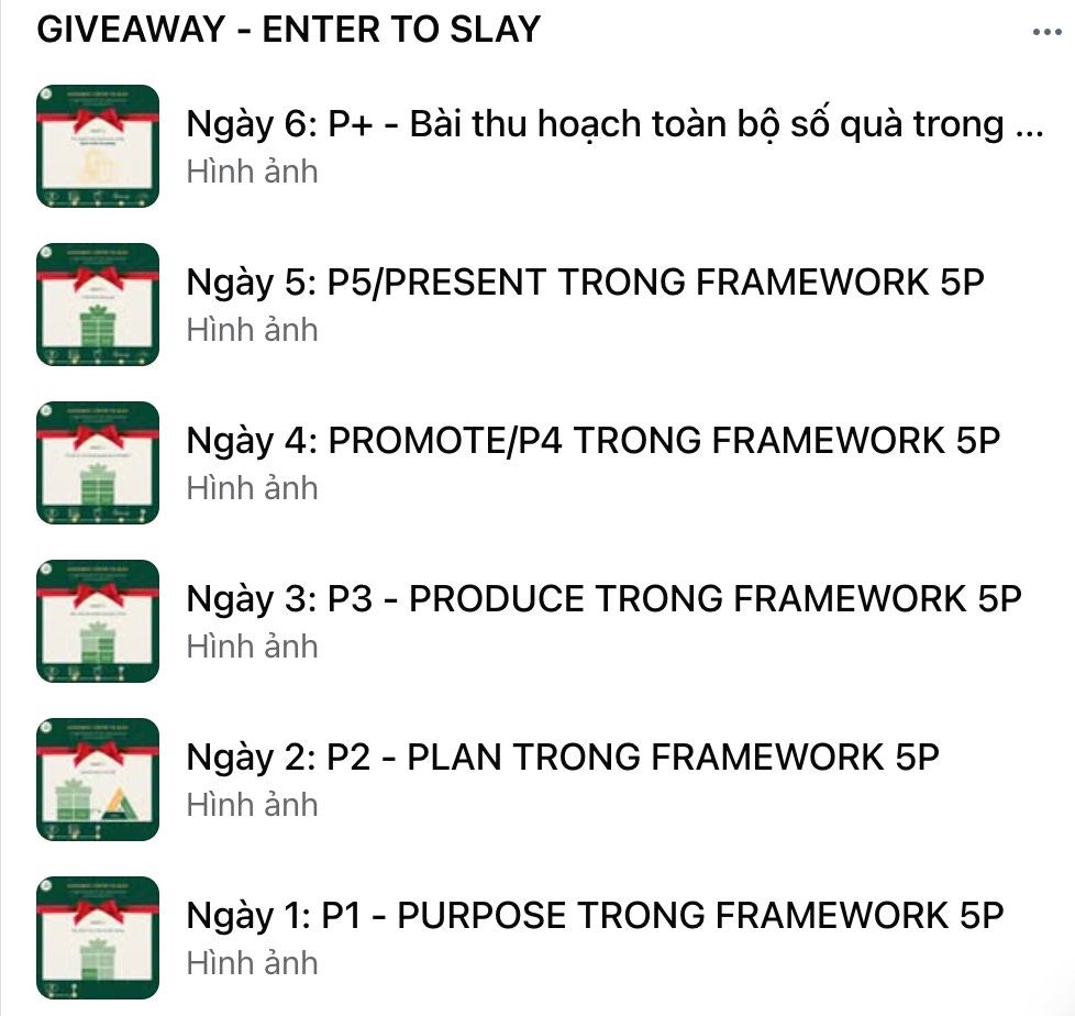 Dành cho bạn nào mới biết đến thử thách và mong muốn nhận quà, trải nghiệm bộ đề theo framework 5P mời bạn điểm qua toàn bộ diễn biến và nội dung thử thách theo hashtag “giveaway”. Hoặc bạn vào tab “Hướng dẫn” trên thanh menu dưới ảnh bìa để trải nghiệm và tự tay đóng gói giveaway cho riêng mình nhé.